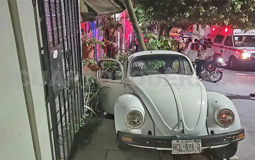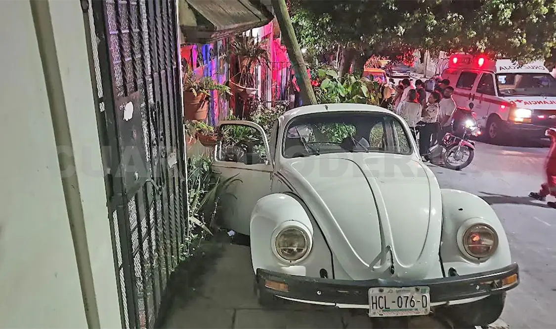 Un vehículo particular se fue en reversa y finalmente se estrelló contra la fachada de una casa, dejando cuatro personas lesionadas, en hechos ocurridos sobre la 14a Poniente y 9a Sur.
