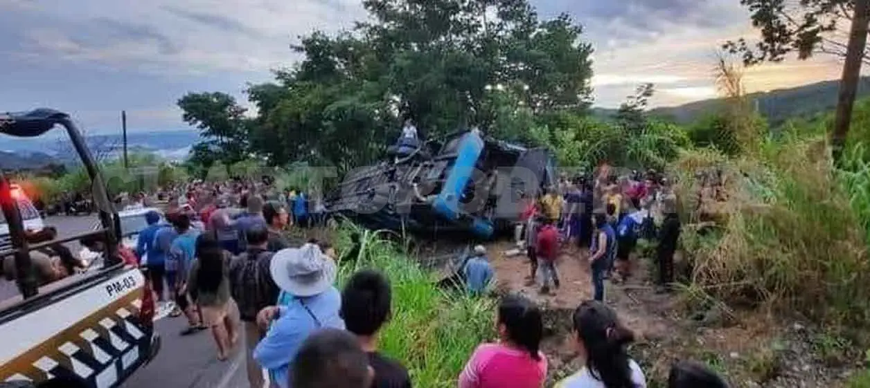 Según las autoridades, el accidente ocurrió en el tramo carretero Salto de Agua-Limar Tila, a la altura de la comunidad Belisario Domínguez, donde en una curva el conductor del autobús perdió el control, volcando fuera de la vía.