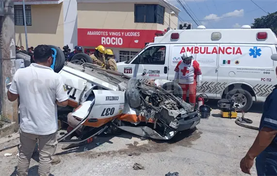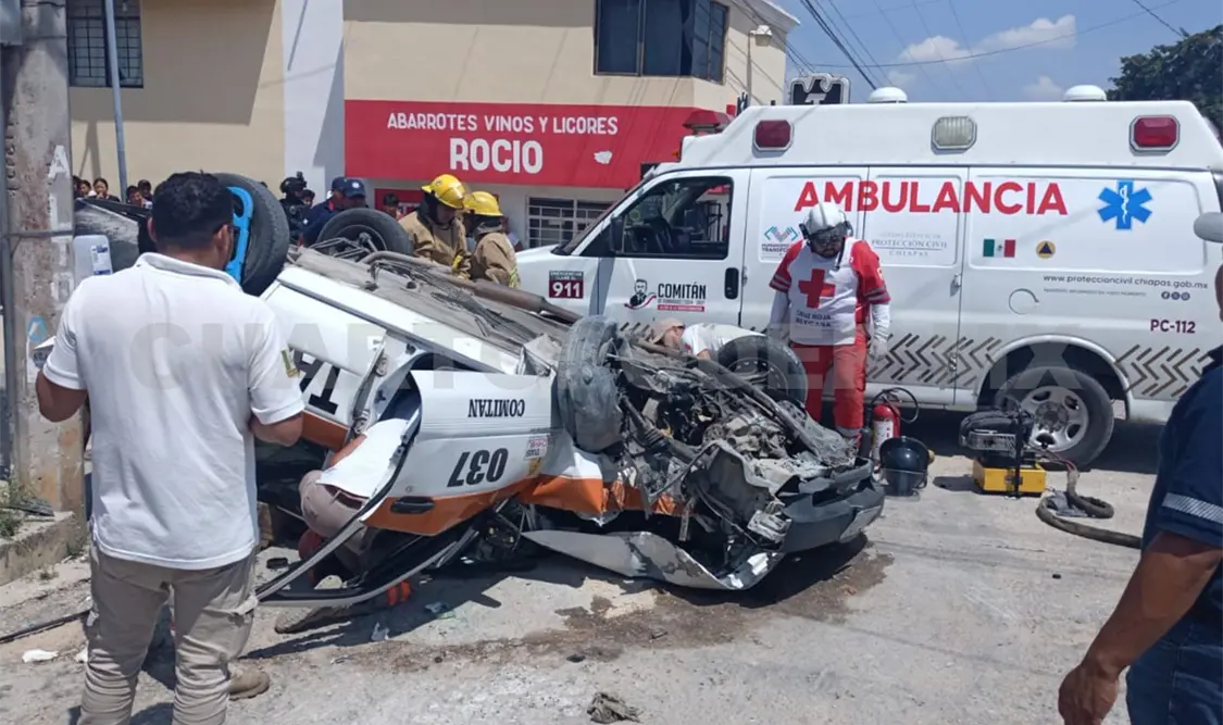 Tres personas lesionadas y pérdidas materiales por varios miles de pesos dejó la volcadura de un vehículo del servicio público en modalidad de taxi, durante el mediodía del sábado en Comitán, lo que movilizó a los cuerpos de emergencia.