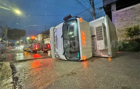 El hecho fue registrado alrededor de las 16:35 horas, cuando una unidad de carga Isuzu y con patentes de circulación del estado de Tabasco, fue impactada en el costado por una unidad propiedad de la empresa Coppel, sobre la 7a Sur y 1a Oriente de la referida delegación.
