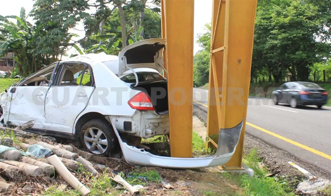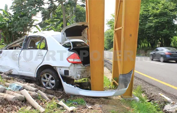 Los cuerpos policíacos encontraron en el lado izquierdo del carril a un automóvil Nissan Tiida, color blanco, con placas DSU-621-C; afuera de la unidad los habitantes apoyaban a cuatro personas lesionadas.