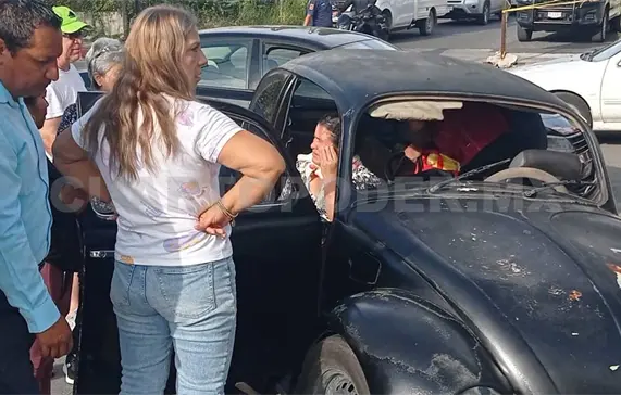 En consecuencia, el vochito terminó estrellándose contra la banqueta. Como saldo del accidente, una mujer que iba como copiloto resultó con múltiples lesiones en sus extremidades.