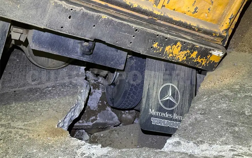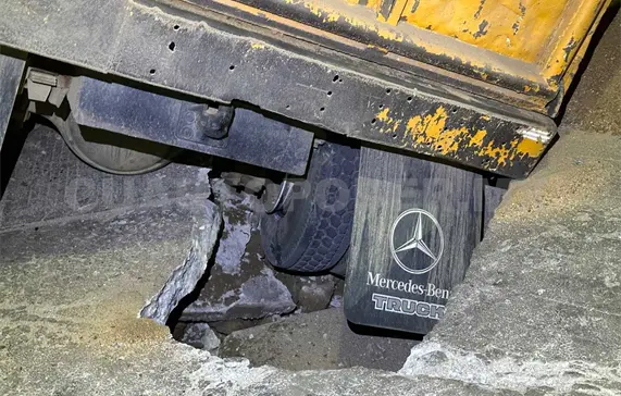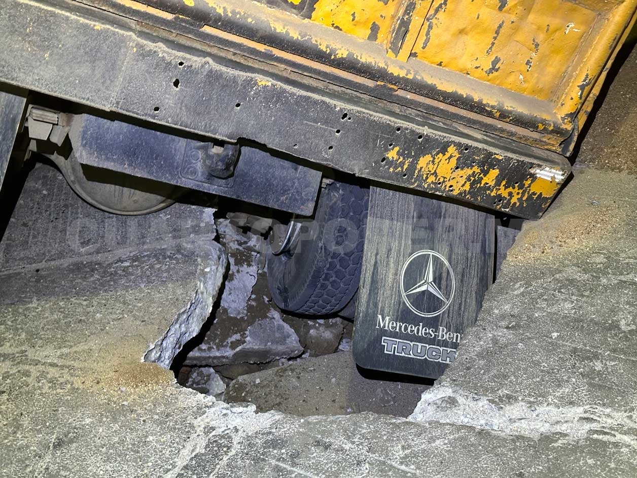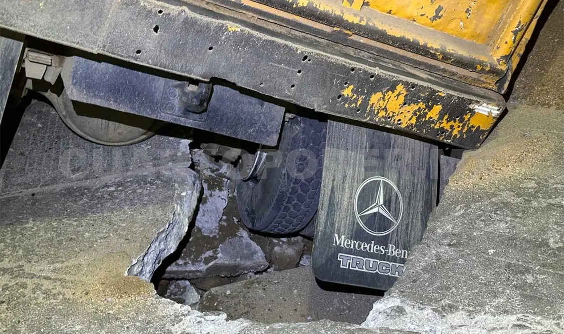 Trascendió que minutos antes de las 21:00 horas, vecinos del barrio Centro se percataron del estruendo que provocó la caída de la pesada unidad que transportaba una carga de arena, esto luego de colapsar el encarpetado de concreto por la fuerte presión ejercida por el peso del vehículo.