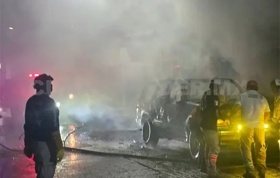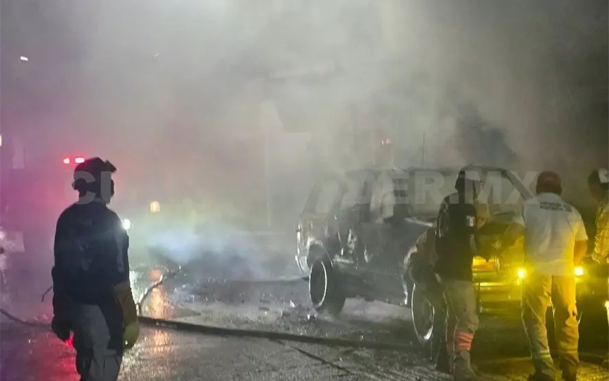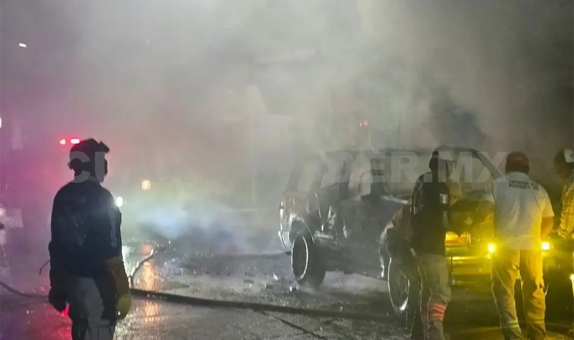 Personal del Heroico Cuerpo de Bomberos arribó al punto afectado cercano al parque central, donde la intensidad del fuego ya causaba estragos en una camioneta estacionada en frente, por lo cual con la ayuda de Protección Civil iniciaron a rociar con agua el área.