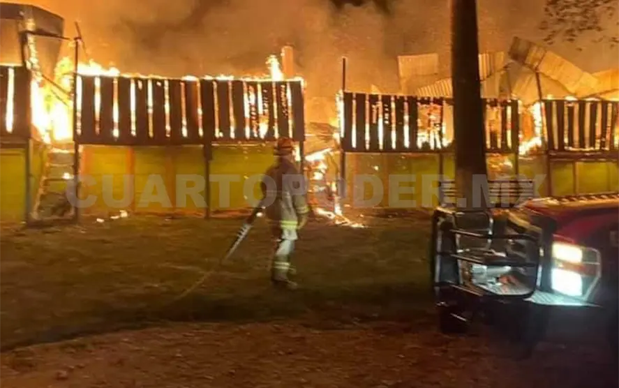 Un incendio en el parque ecoturístico “Grutas de Rancho Nuevo” consumió nueve locales comerciales de madera, con saldo de un oficial de bomberos intoxicado, personas con crisis nerviosa y cuantiosas pérdidas materiales en piezas de artesanía.