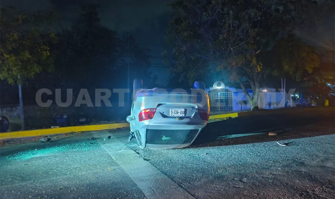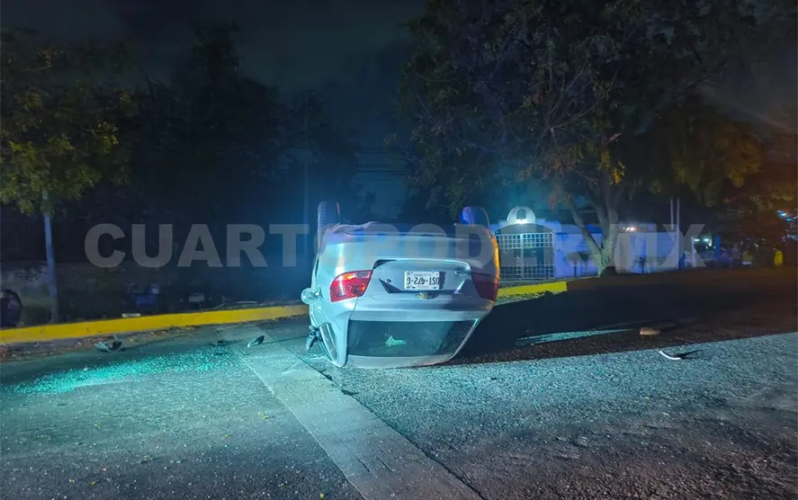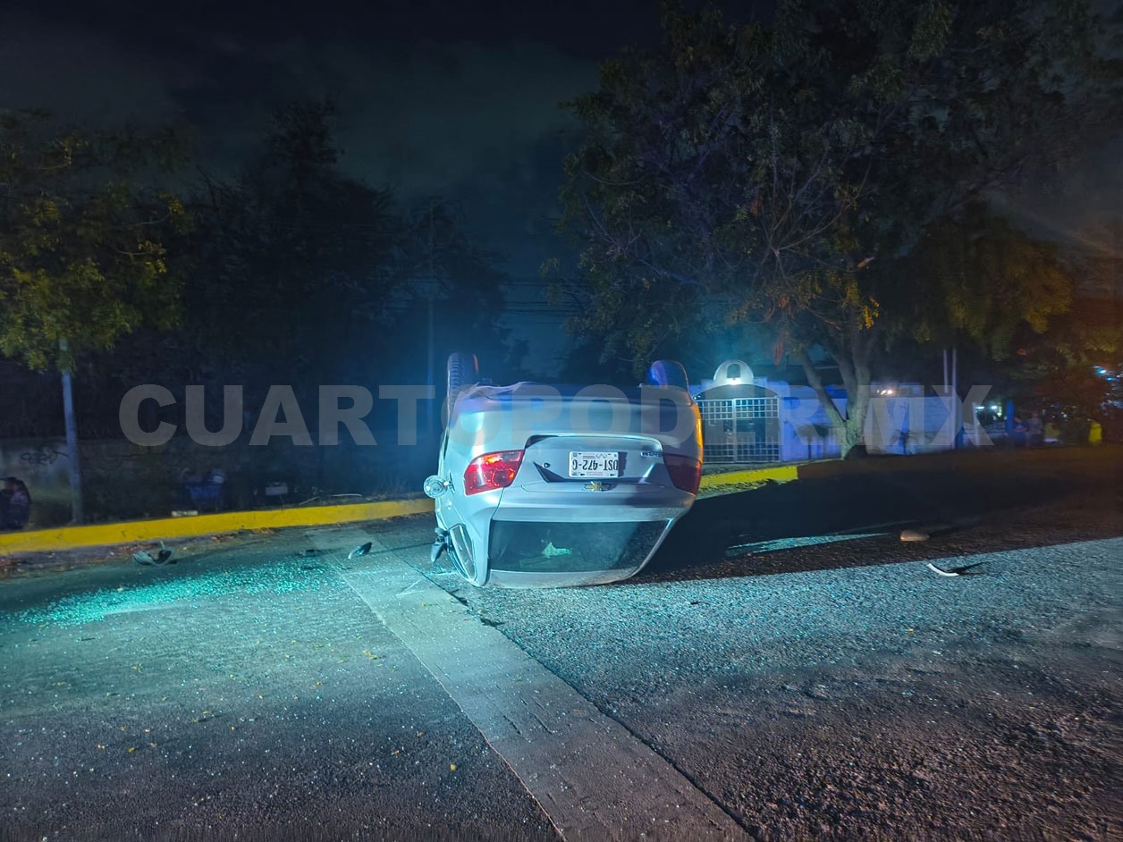 Un vehículo particular resultó con daños considerables luego de volcar durante la madrugada del jueves sobre la calzada Emiliano Zapata, a la altura de la colonia Loma Bonita Terán, al sur poniente de la capital Tuxtla Gutiérrez.