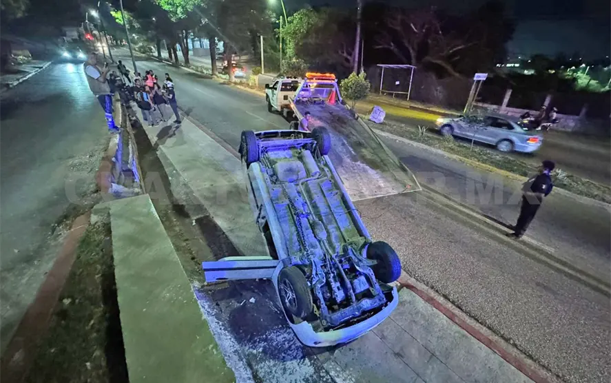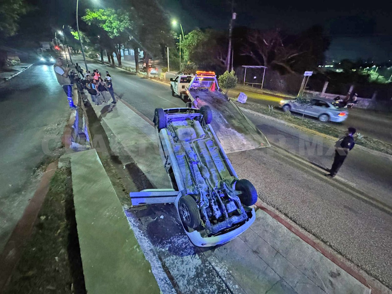 Dos personas resultaron contusionadas durante una aparatosa volcadura sucedida en la entrada a la colonia Terán, ubicada en Tuxtla Gutiérrez, las últimas horas de la noche del viernes.