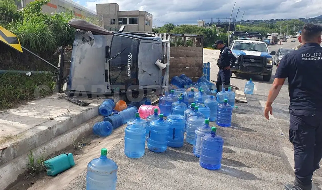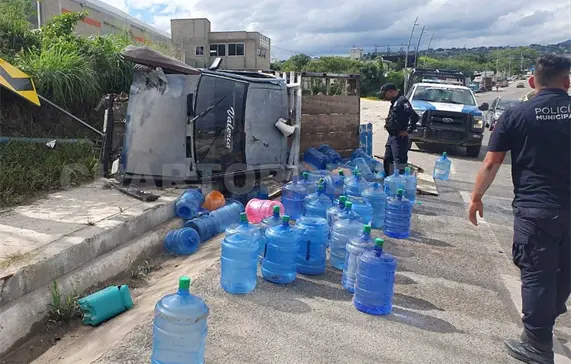 Los ocupantes se encontraban sentados sobre la banqueta y decenas de garrafones con agua yacían dispersos a lo largo de la carpeta asfáltica.