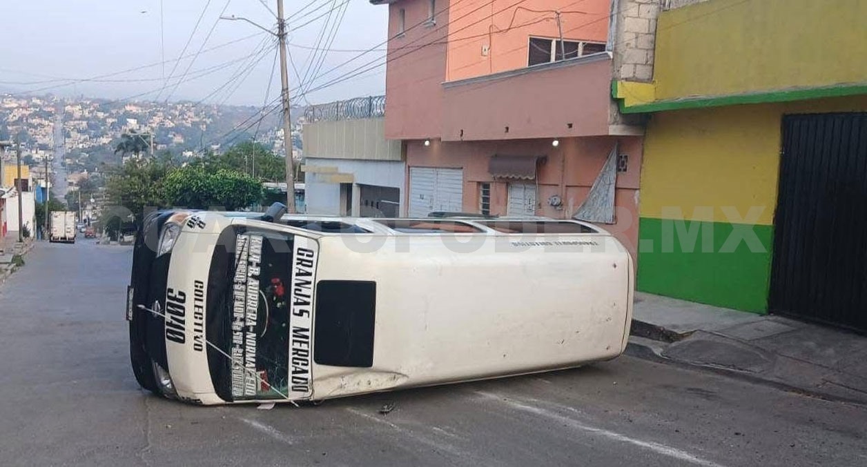 Un aparatoso accidente de tránsito registrado en la colonia Las Granjas, en Tuxtla Gutiérrez, dejó como saldo un colectivo volcado y daños materiales valuados en miles de pesos, sin que se reportaran personas lesionadas.