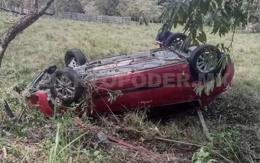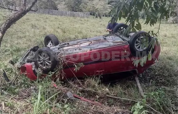 Presuntamente derrapó ligeramente al tomar una curva y salió del camino, volcando hasta finalmente quedar con las llantas hacia arriba.