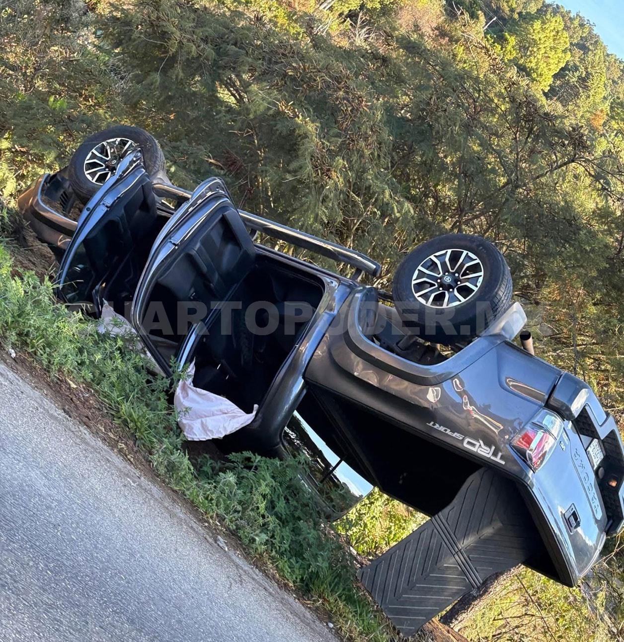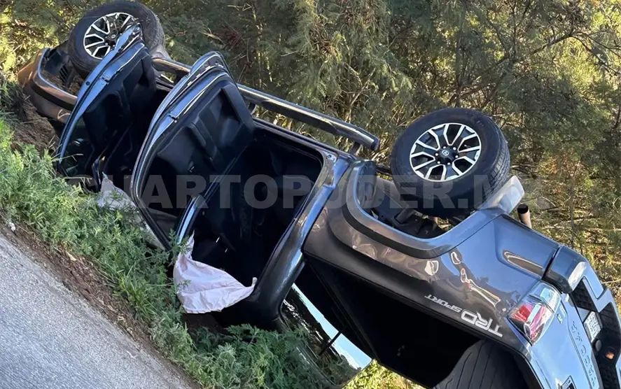 Los hechos ocurrieron a la altura de la localidad El Porvenir, donde —de acuerdo con los primeros reportes— el presunto exceso de velocidad habría provocado que el conductor de una camioneta Toyota Tacoma de color gris, perdiera el control del volante. La unidad salió de la cinta asfáltica y terminó accidentándose a un costado del camino.