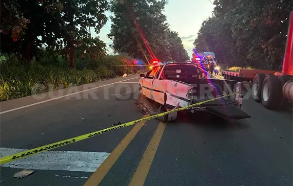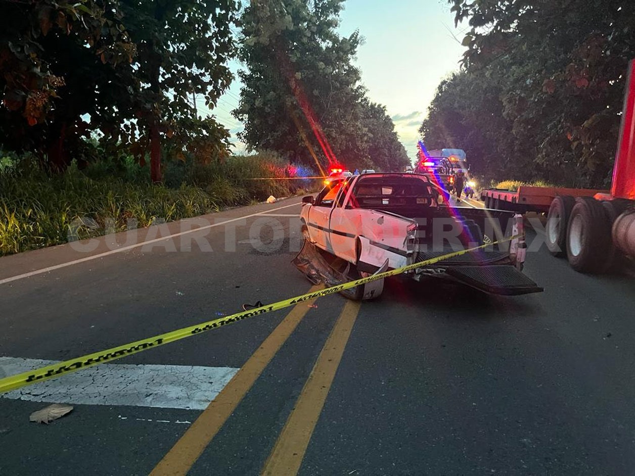 Viajaban en una camioneta Tornado de color blanco, con placas del estado de Veracruz, a la cual al parecer se le explotó un neumático y a consecuencia de ello el conductor perdió el control, pegó en un bordo de tierra y terminó volcado.