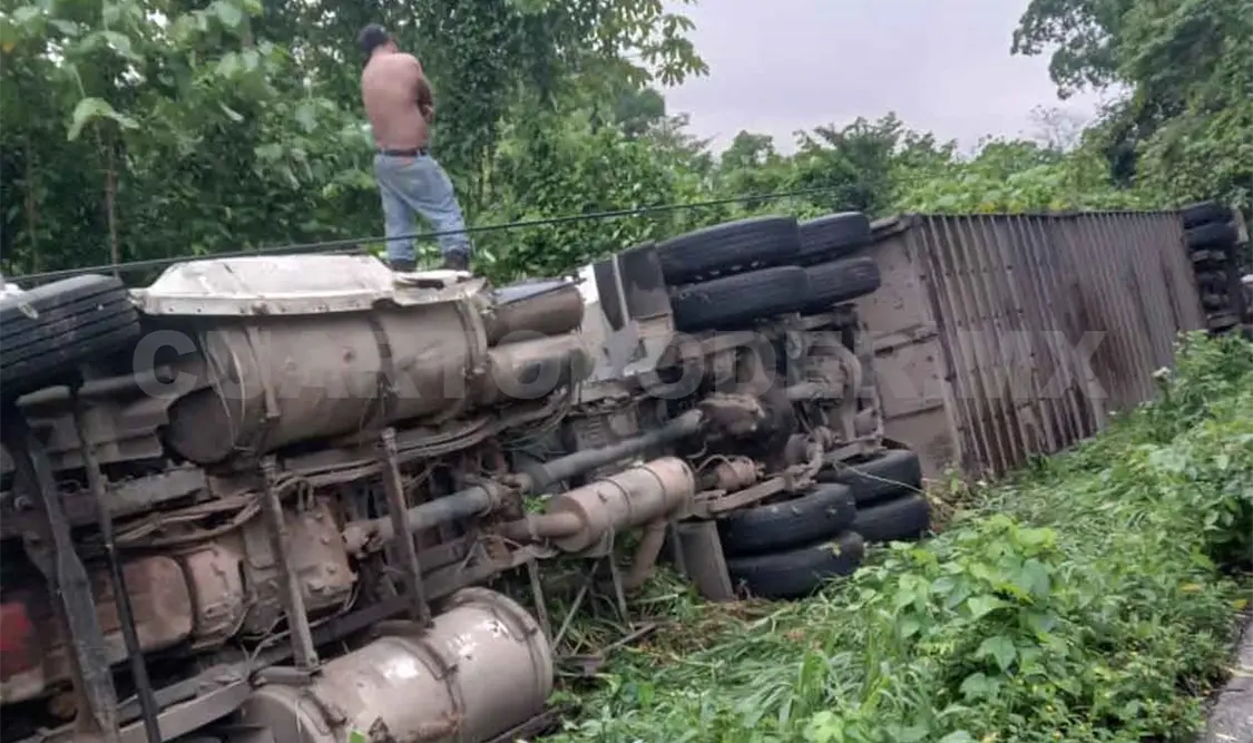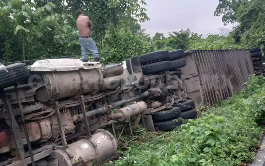 De acuerdo a datos recabados por este medio informativo, fue en la carretera Palenque-Benemérito de Las Américas a la altura del crucero de la localidad San Juan Chancalaito, donde se observó el tráiler que estaba accidentado sobre uno de sus costados fuera de la carretera, entre la maleza.
