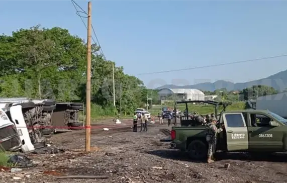 El domingo se registró una nueva volcadura de tráiler en la conocida Curva del Diablo, dejando daños materiales de alta consideración y al conductor con lesiones leves, en el municipio de Huixtla.