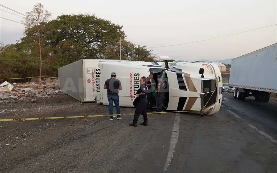 La unidad Kenworth con doble remolque de la empresa Castores con placas del Servicio Público Federal, era conducida por Gustavo “N” (31 años) quien por el exceso de velocidad no logró controlar el volante en la curva y se dio la volcadura, terminando fuera de la carretera.