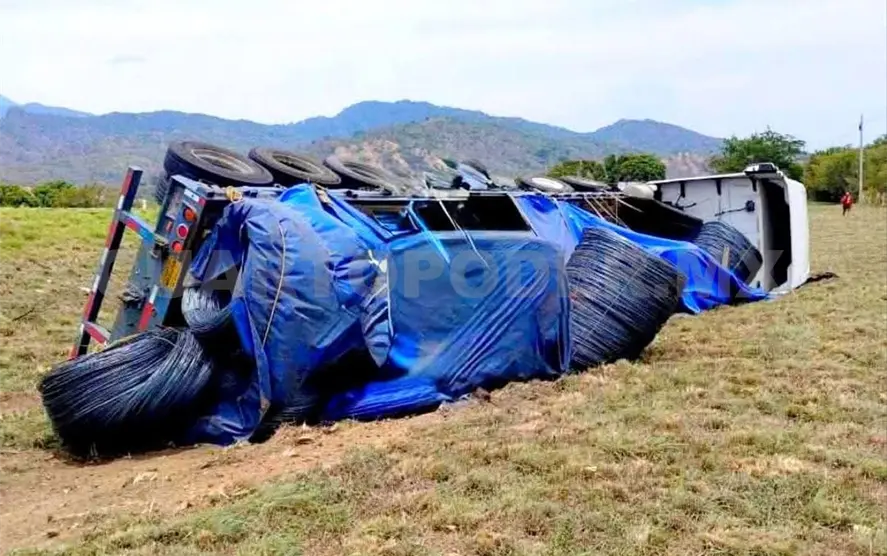 Se dijo que el tráiler volcó con todo y su carga cuando iba con dirección a la frontera sur, transportando material para la construcción.