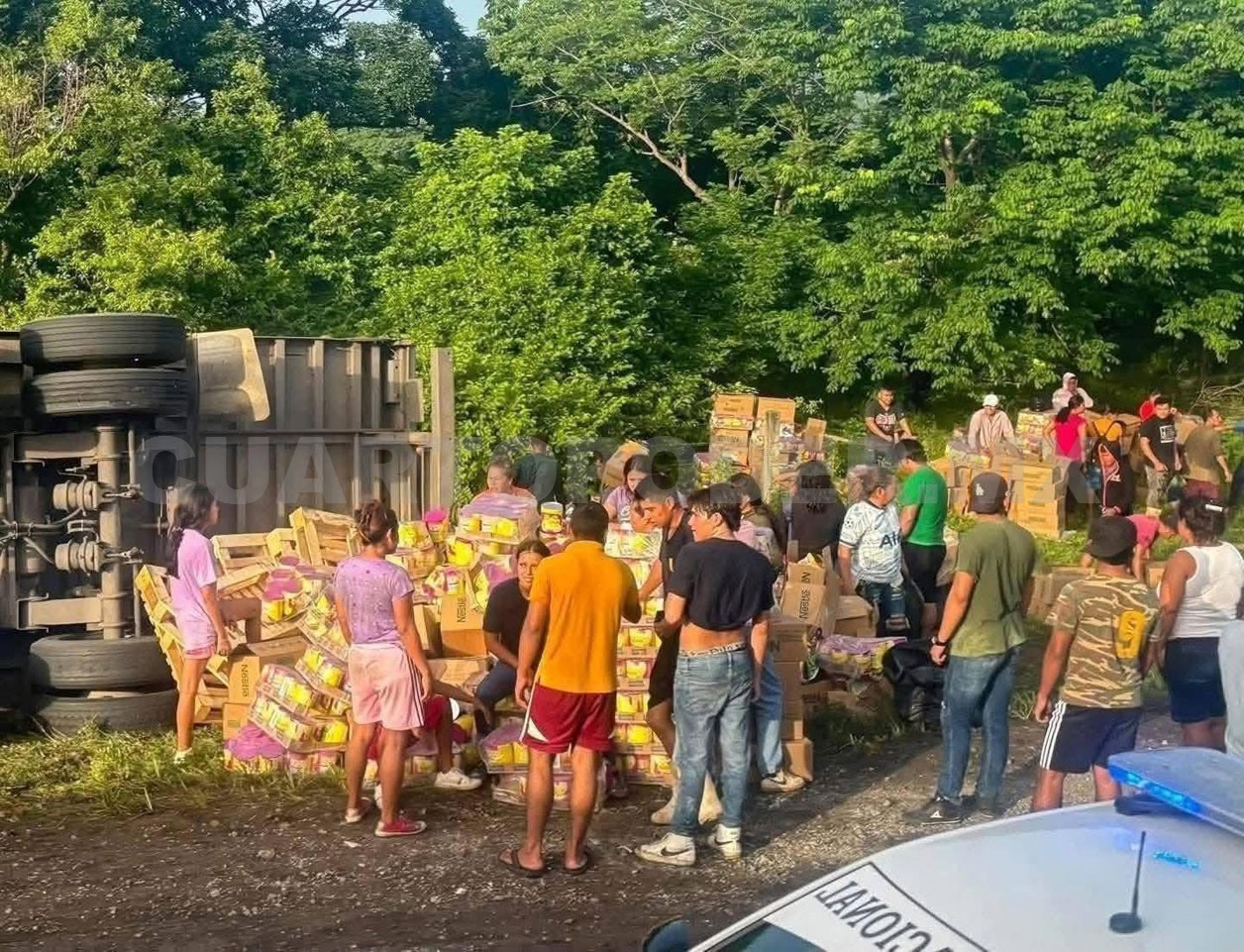 Lamentablemente, los lugareños lejos de brindar el apoyo al trailero prefirieron ignorarlo y hacer columnas con los paquetes de leche en polvo para después llevárselos, cometiendo un delito.