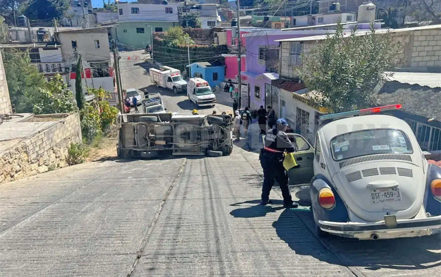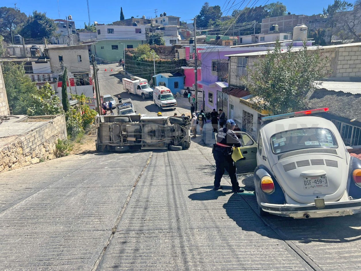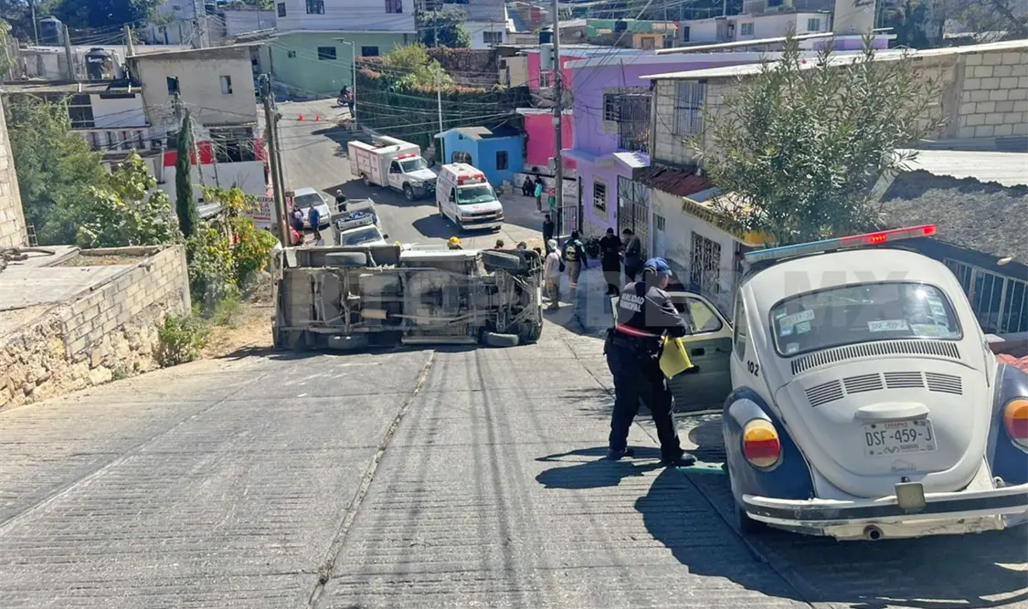 Una camioneta volcó durante la tarde del lunes en la ciudad de Comitán cuando circulaba en una calle bastante empinada y el motor perdió fuerza, aparentemente apagándose, por lo que el chofer no pudo controlar el vehículo, retrocedió y terminó sufriendo un accidente.