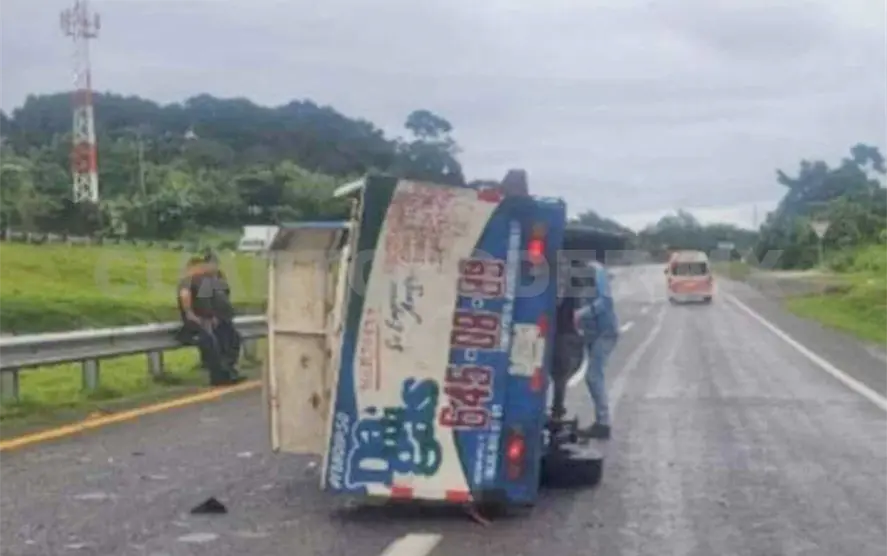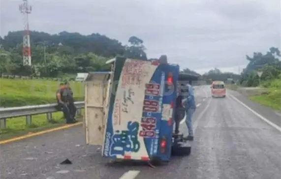 Al llegar, localizaron a una camioneta Nissan tipo pick up, de la empresa Damigas. Yacía volcada casi en medio de ambos carriles de la carretera. El conductor del vehículo de color blanco con verde y con placas DB2552A del estado de Chiapas, había perdido el control del volante tras un inesperado deslizamiento.