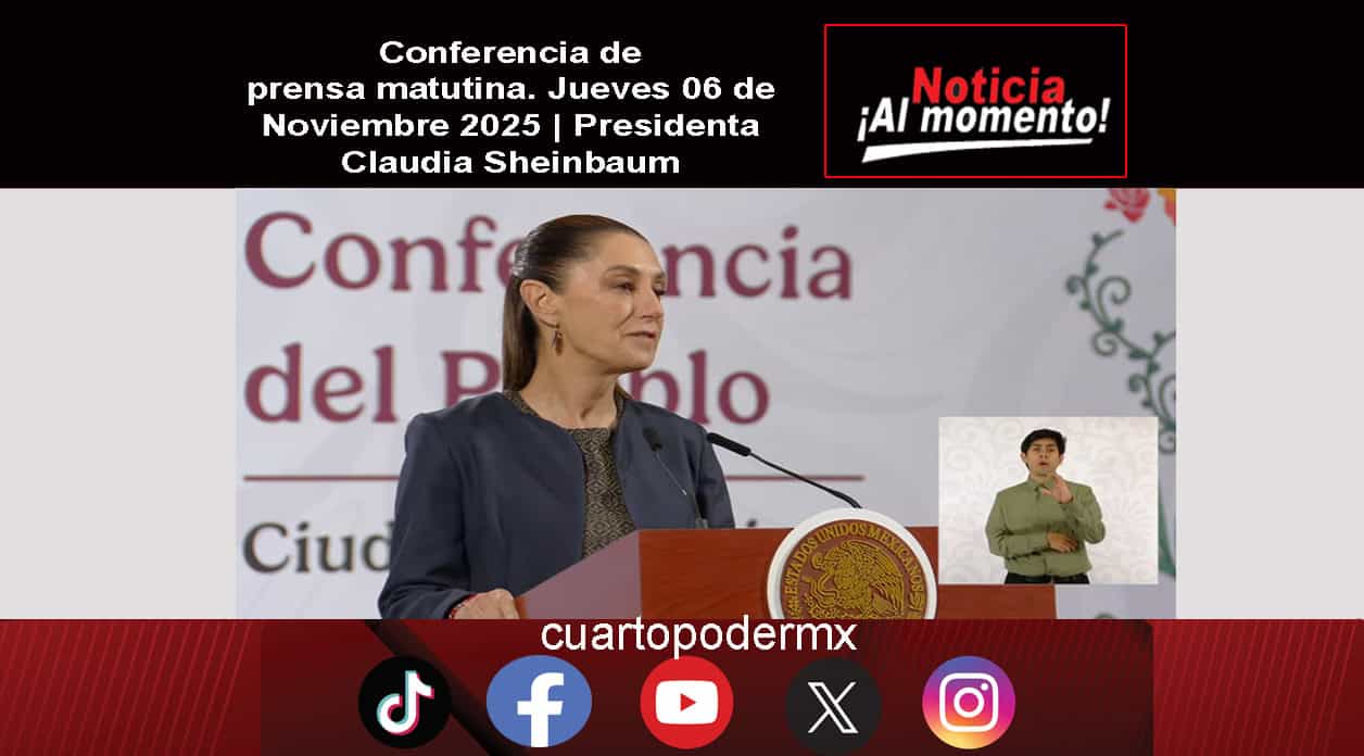 Conferencia de prensa matutina. Jueves 06 de Noviembre 2025 | Presidenta Claudia Sheinbaum