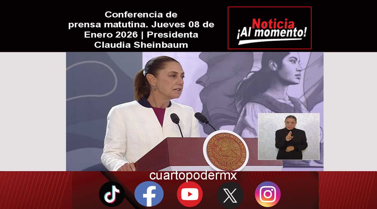 Conferencia de prensa matutina. Jueves 08 de Enero 2026 | Presidenta Claudia Sheinbaum