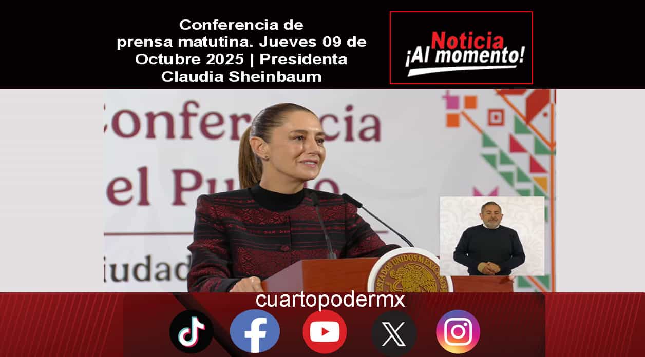 Conferencia de prensa matutina. Jueves 09 de Octubre 2025 | Presidenta Claudia Sheinbaum