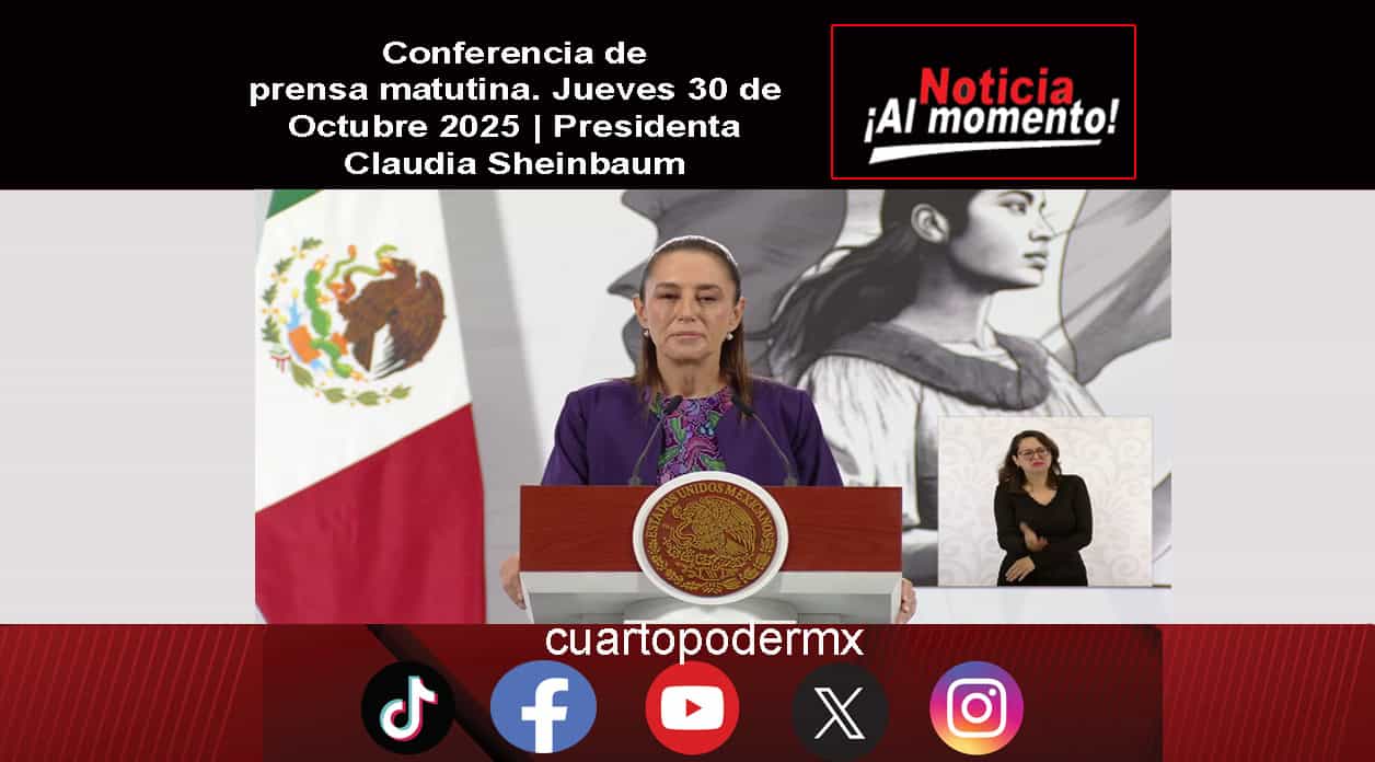 Conferencia de prensa matutina. Jueves 30 de Octubre 2025 | Presidenta Claudia Sheinbaum