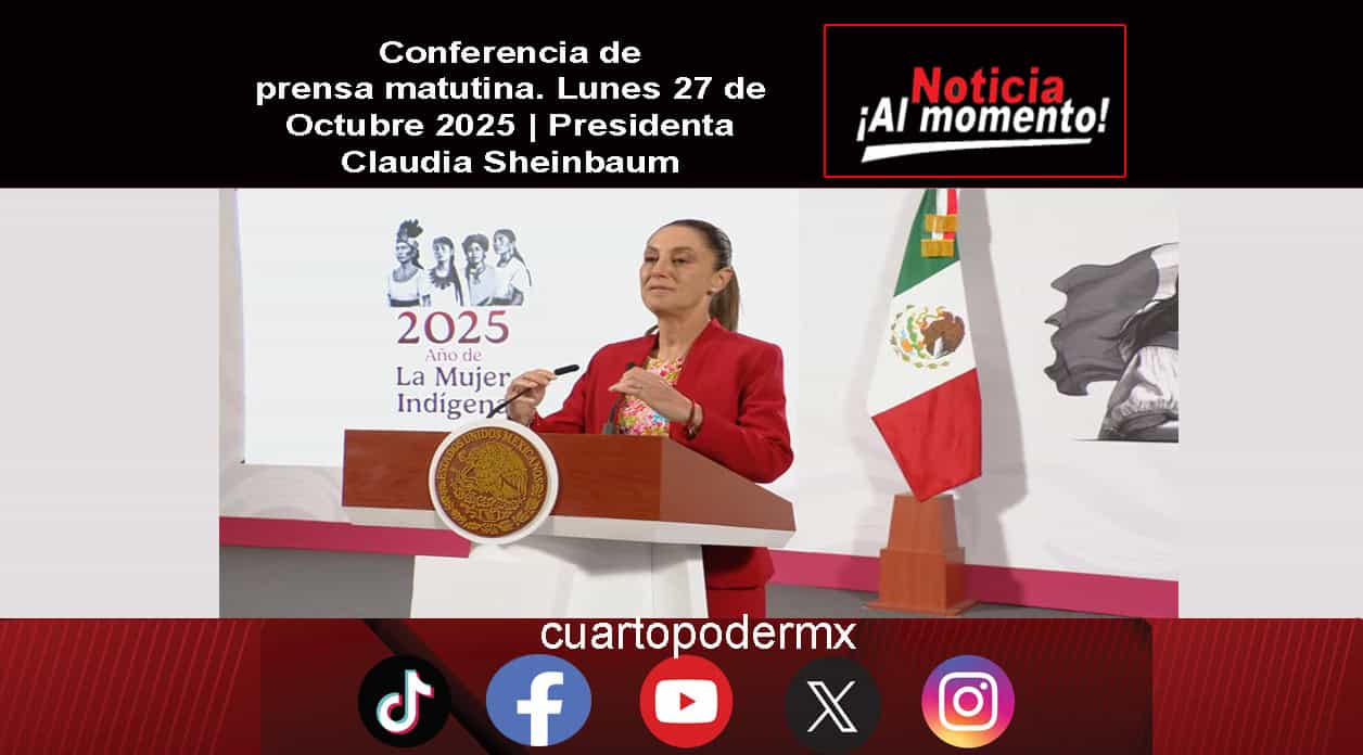 Conferencia de prensa matutina. Lunes 27 de Octubre 2025 | Presidenta Claudia Sheinbaum
