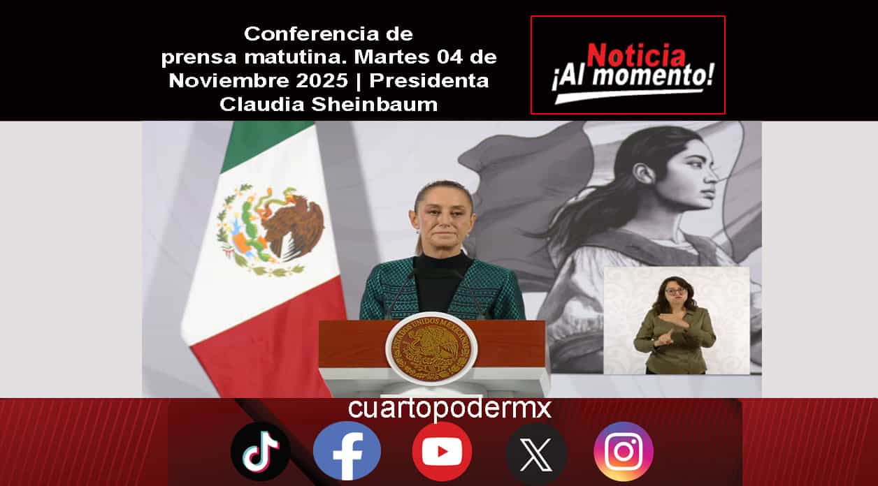 Conferencia de prensa matutina. Martes 04 de Noviembre 2025 | Presidenta Claudia Sheinbaum
