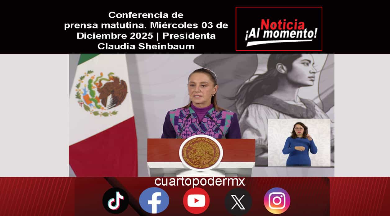 Conferencia de prensa matutina. Miércoles 03 de Diciembre 2025 | Presidenta Claudia Sheinbaum
