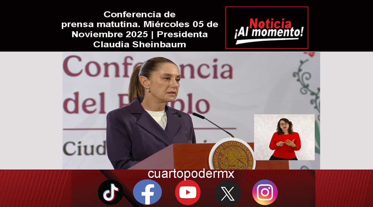 Conferencia de prensa matutina. Miércoles 05 de Noviembre 2025 | Presidenta Claudia Sheinbaum