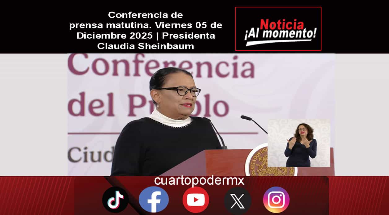 Conferencia de prensa matutina. Viernes 05 de Diciembre 2025 | Presidenta Claudia Sheinbaum
