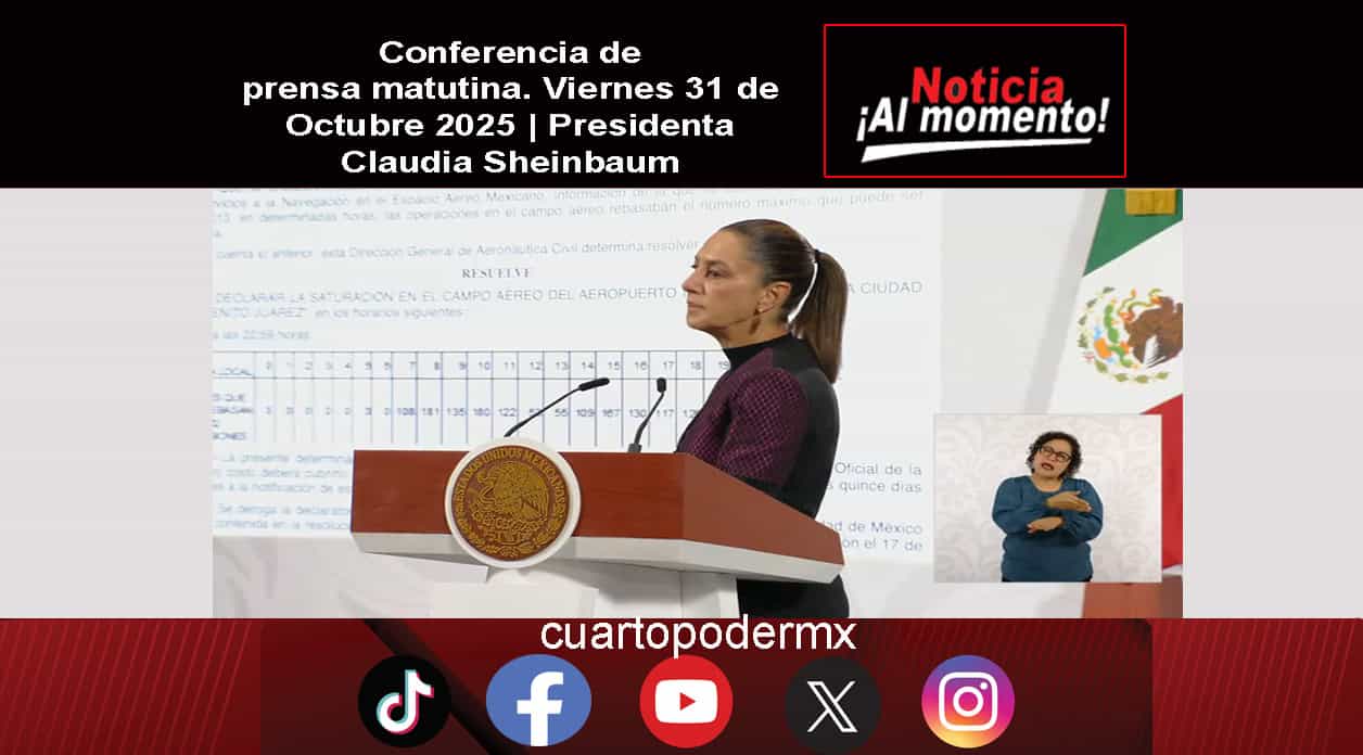 Conferencia de prensa matutina. Viernes 31 de Octubre 2025 | Presidenta Claudia Sheinbaum